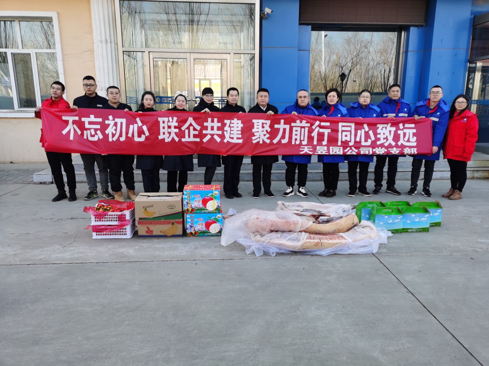 在新春来临之际, 为进一步增强兄弟单位间的友情和文化交流,加强沟通联系,2月1日上午10时许,内蒙古天昱园新能源股份有限公司党支部一行到乌拉特前旗中燃公司走访慰问在厂职工,在为他们送去猪肉、羊肉、鸡肉、水果等慰问品。
